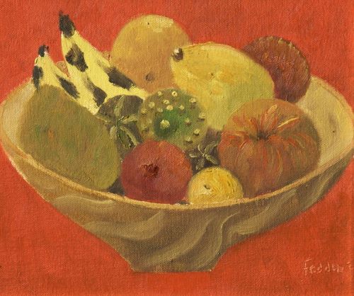 We have this painting in our collection called Fruit at Christmas by Mary Fedden (1912-2012). Now if you’re anything like me when it comes to Christmas food fruit probably isn’t as high up on your agenda as it should be.