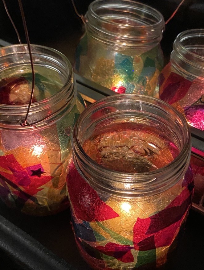 Step 2: Once the jar is fully covered and you are happy with your design, let everything dry. The glue will dry clear.