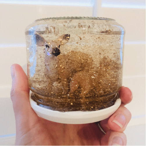 Now turn it upside down and watch the glitter whirl around in your own whimsical winter wonderland!