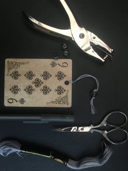 Ideas: You could also transform any unwanted playing cards or tarot cards into card embellishments, gift tags or use them to create a themed shadow box. You can buy hole punches for card making, usually for a very reasonable price, which will punch holes in different shapes. Why not try using these to add star shaped cut outs and other details to your cards?