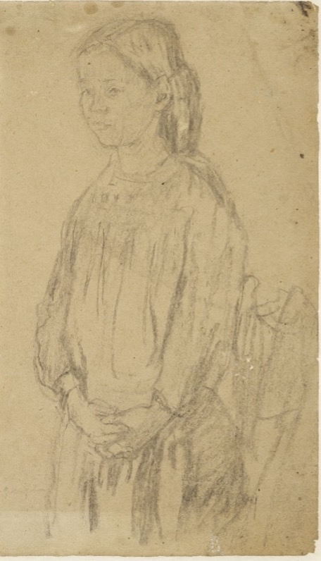 Here at the Whitworth we have four pieces of John’s work in our collection: two drawings of a girl, one of a woman from behind, and a pencil, chalk and watercolour view of a street near her home in Meudon. John has become well known for her paintings of “the Interior.” Primarily, John is known for her oil paintings of seated women, though her sketches and watercolours, still lifes of various modest rooms, people (often from behind) and works based on her cats number in the thousands.