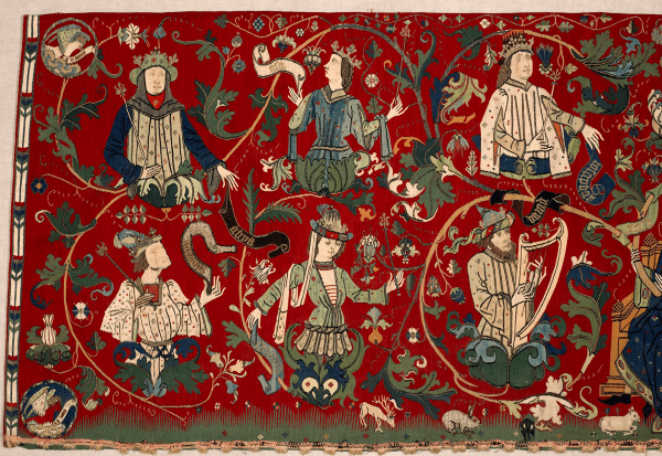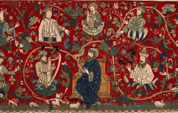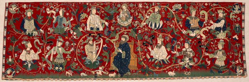 What does the unicorn have to do with Christ and God specifically and why is it depicted on such a tapestry? A 12th century bestiary in the Cambridge University Library compares the unicorn to Christ and claims that the unicorn’s horn is symbolic of the unity of the Father and the Son. The bestiary cites different Psalms in which God is associated with unicorns on account of the strength a unicorn was believed to have or because of the precious nature of the unicorn. King David himself, who also appears on the tapestry, was thought to be the author of many Psalms. Thus comparisons between Christ, God and the unicorn may account for the inclusion of one on the altar frontal at the Whitworth.