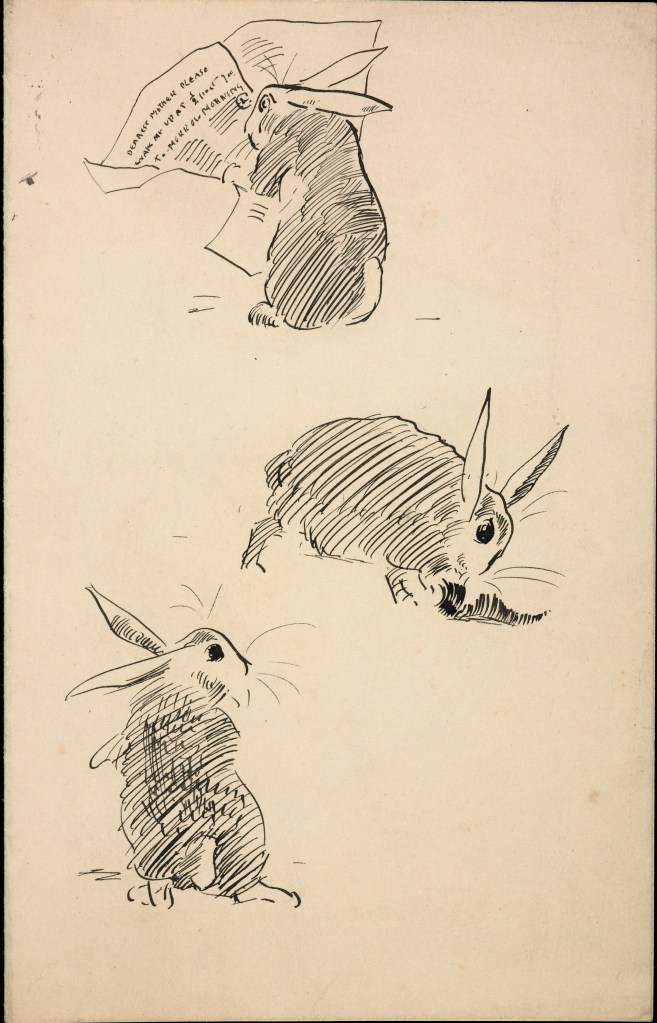 It is there that the rabbit sees something that sparks inspiration, and moments later, rushes back home.