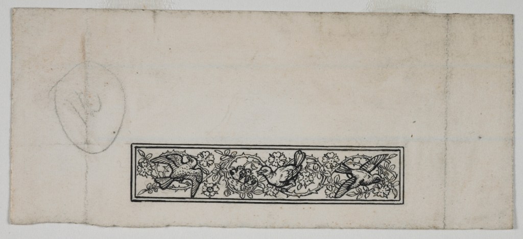 The rabbit looks to the right, in a tree, rest a small flock of birds