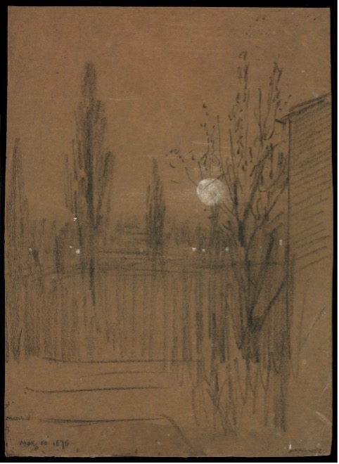 As the moon comes out over a clear night sky, the rabbit continues working through the night.