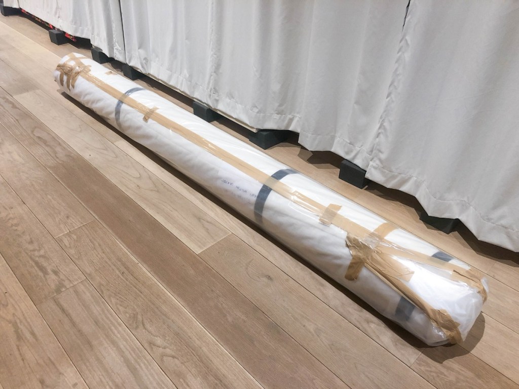We took the opportunity to improve the storage of the textiles while we were working on them. The room which housed these textiles was previously home to a mismatch of roller lengths, which made storing them along the walls quite the game of Tetris (metaphorically: no textiles were dropped from the ceiling). By standardising our roller lengths to the nearest 50cms, we could create bays for each length of roller. This will ensure the space is not only easier to use, but also maximises the storage potential.