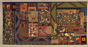 I remember looking at The Whitworth Tapestry. It was up as part of a tapestry show at the Whitworth that celebrated the technique. It is a fundamental means of image making shared by so many cultures all over the world. It is a slow and deliberate art. Interesting then that Paolozzi approached it, when the project was commissioned by the gallery to commemorate the big interior renovation of the building in the 60’s, with his impulse to collage in full flow. To put things together with haste, or at least to capture something of the haste in which images are seen to live together. The putting together of quick and slow (image and technique) is in itself a layer of collage.