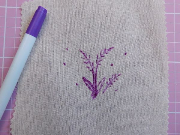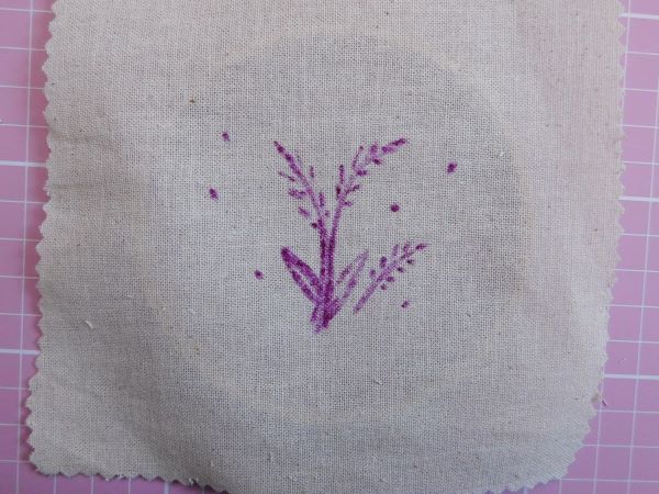 Cut out the heart shape and then draw around it on the ‘wrong’ side of the fabric you wish to embroider your lavender design onto. Cut a square of fabric, with the heart shape you have just drawn in the centre of the sqaure, from your length of fabric.