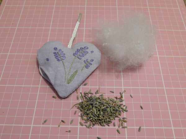 Once you have turned your work the right way around, you can begin to stuff it using a small amount of toy stuffing to help the lavender heart keep its shape and pack the heart with as many dried lavender flowers as you like!