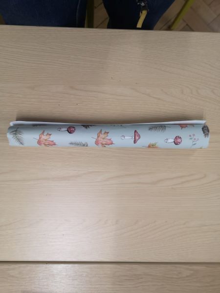 4) Roll the wrapping paper over the cardboard rolls to completely cover them, making sure to overlap the paper over the line of glue. Firmly press down over the line of glue to secure it. Gently pull out the two cardboard rolls on either end about 3cm. Between the middle and outer cardboard roll, rotate in opposite directions to create your seal. Repeat this with the other side.