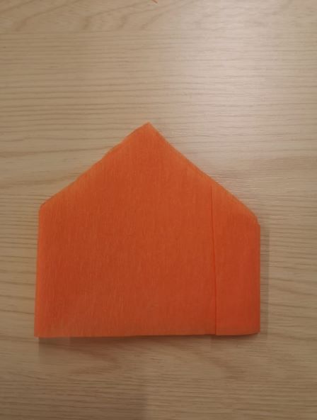 1) First make the paper hats. Using your scissors, cut out a piece of tissue paper roughly 30cm by 7cm in length, then keep folding it in half until you’re left with a small rectangle. Carefully cut a point out at the top, then unfold. Gently use the glue stick to glue join the two ends of the hat together