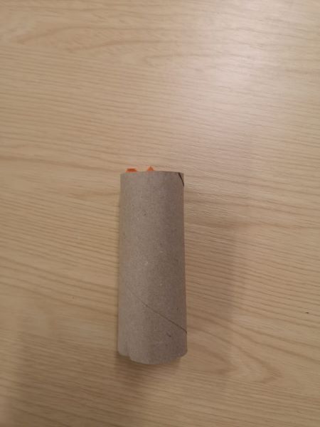 2) Once the glue has dried, put your joke or riddle inside the hat and fold it up. Carefully place the hat, riddle and your filler gift into one of your cardboard tubes.