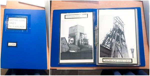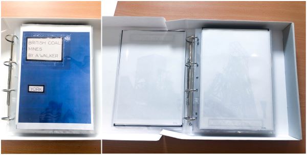 The photos, which are silver gelatin prints, were catalogued using the materials Walker had to hand: ring binders and old family albums. The images were stuck onto backing card, with the name of the mine printed underneath, and placed either within a plastic wallet or underneath the plastic sheeting of the album.