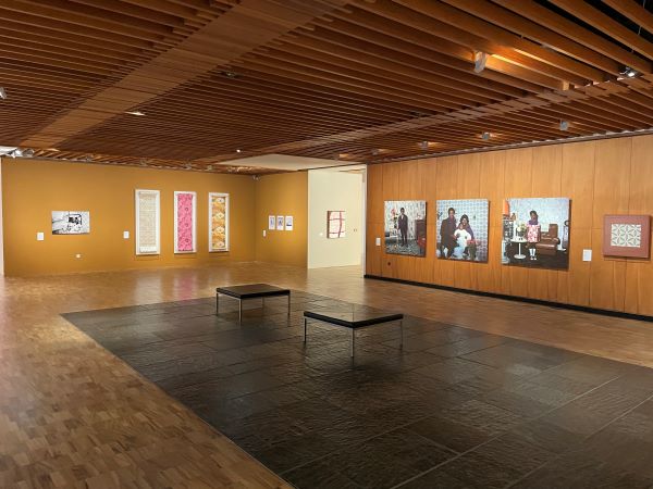 When you first arrive at the Whitworth you are greeted by a beautiful red terracotta building, this grand facade is in the Neo-Jacobean style. This architectural style became popular in the UK from the 1820s and was a revival of the ‘Jacobean’, otherwise known as ‘Jacobethean’, architecture style that originated in the English renaissance between 1550-1625- a classic example of this being Highclere Castle which is featured in the television show Downton Abbey. When you enter the gallery you are welcomed by our foyer, which is actually the oldest part of the gallery itself, built before the terracotta facade you now see (which was built in 1908), this building was originally called Grove House, with the main footprint of the gallery (which is now Gallery One) where the Standardisation and Deviation exhibition is currently situated. An interesting fact is when you are in this space you will see two stud walls on either side of the gallery (left and right) these contain a series of feldspar columns from the original build, you’ll see examples of these in the foyer at the entrance, however those in Gallery One were covered a number of years ago to house important electrical equipment.