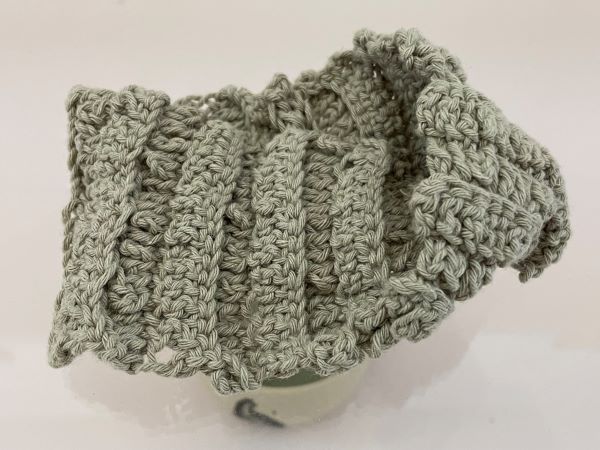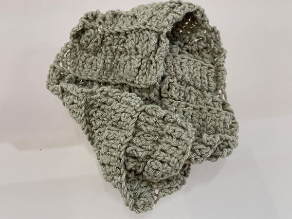 Lena: I actually picked up crochet during lockdown, because my other creative outlets were dependent on space outside of my house as I didn’t have any space in my home to set up a studio or a garden, which lots of people kind of discovered they could do that and run with it. It became very clear that I could not, so I was trying to find a way to continue expressing myself and came across a book of how to crochet from my grandmother and it’s from the 70s so they designs are kind off amazing with photographs. I bought some natural fibre wool from Aldi and just started to crochet. I was a few months into crocheting before I realised I was doing advanced stitch but what I realised earlier on with crochet was it felt like a language, like a form of communication. To me just the way that you put things together…I felt like I was having a conversation with my grandmother and all of the people. It took me to a place where I felt connected to a very old conversation. A foundation of creativity and community is in my mind. So being able to get together in this non-verbal way has interested me about being an artist and creative person.