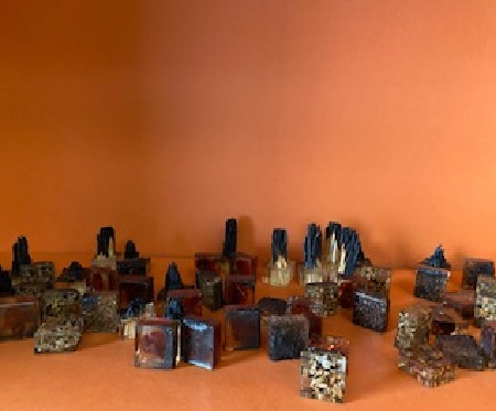 Sunaina Bhalla’s ‘Residual Landscapes’ is inspired by the text, ‘Curry and Rice on Forty Plates, or the ingredients of social life at ‘our station’ in India’ and showcases an array of spices beautifully encased in blocks of resin, displaying the ‘power, aura and resilience of Indian spices’.3