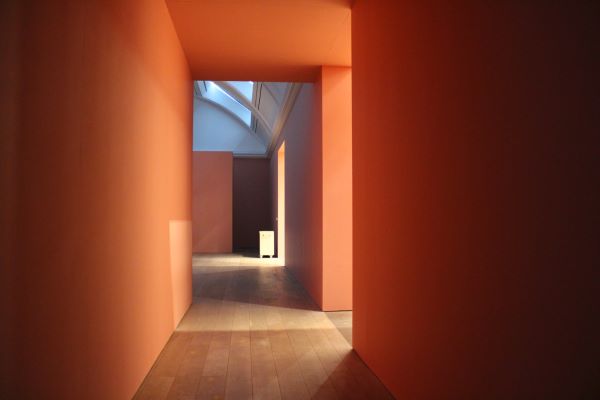 A perspective of the gallery where The Batchelor Girl’s Room is. The wall has a lovely square in square look.