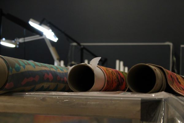 Rolls of fabric which eventually went on display.