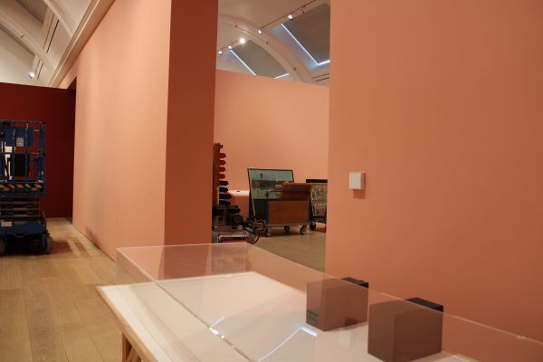 0306 – Lots of squares. The beginning of photographing the build-up of the Althea McNish: Colour is Mine exhibition. The walls are already painted a pretty pretty pink. The amount of squares: long, oblong, twee, tiny. The pink ombres in some directions or harshly outlining in other squares.