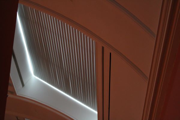 A close up of the ceiling which has vents to control the light and air coming into the gallery; a really important aspect of conservation for pieces which are being exhibited.
