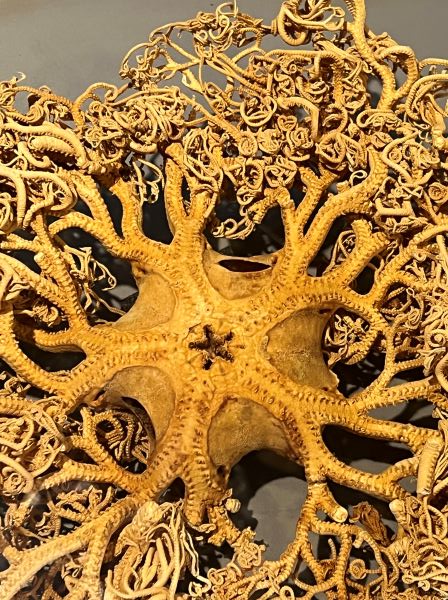 I found myself extremely drawn to this beautiful basket star. A work of art in its own right, I love the intricacy of its long branch-like arms, now shrivelled and lifeless, but which would have once been reaching out into its watery world. As an ocean lover and a keen snorkeler, I have a fascination with marine inhabitants and a deep admiration for beauty found in nature. Basket stars are far ranging and can be found in all the world’s oceans, even in the Arctic and Antarctic regions. Some prefer deep ocean environments while others dwell in shallow tidal pools. The greatest concentrations can be found in the area of the ocean between Australia and Africa.