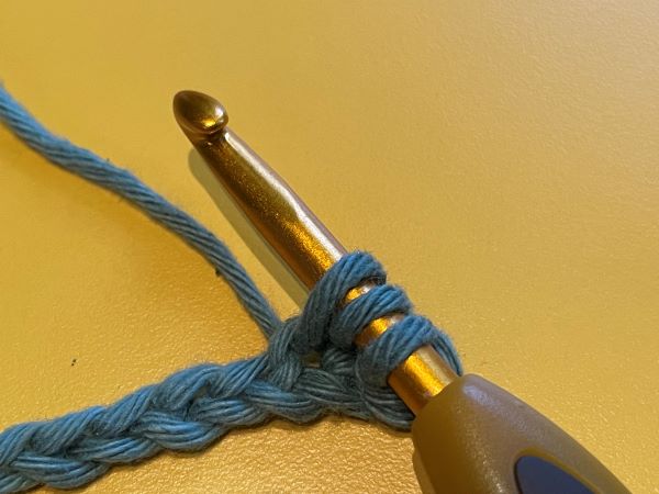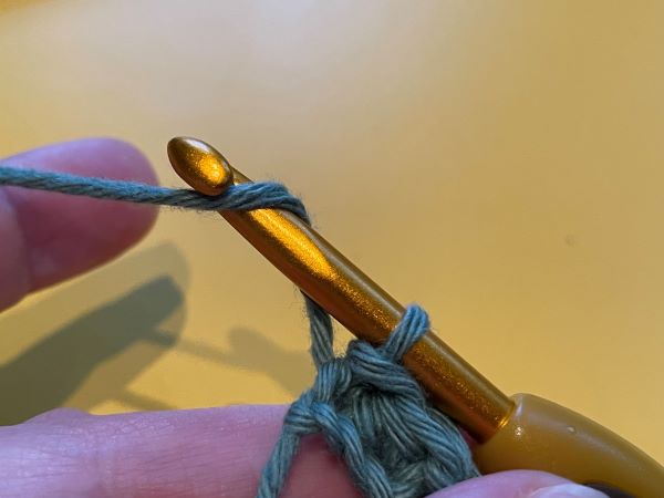 Now pull a loop of working yarn through that chain stitch so that you have what appear to be three loops on your hook.
