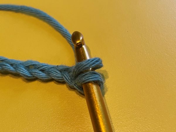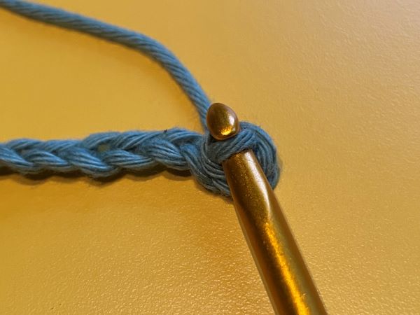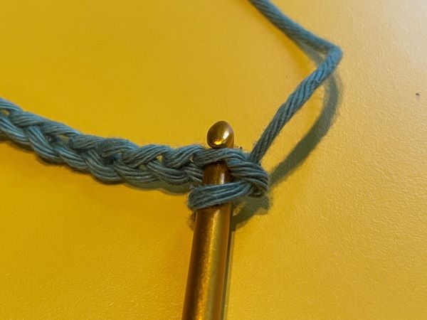 Now pull a loop of working yarn through that chain stitch and you have your second chain stitch. Continue making chain stitches until you have 14 chain stitches.