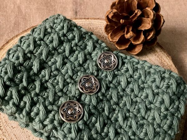 I added some small metal shank buttons, about 13mm in size, to the coffee cup cosies I made in order to give them a bit more of a festive feel. You’ll want to make sure that any buttons you use have a large enough hole to pass your yarn and tapestry or yarn needle through.