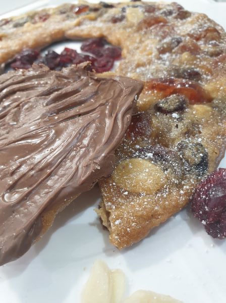 Turn your Florentine wreath over. At this point, you can dust icing sugar over it. Cut into sections to serve. Enjoy!