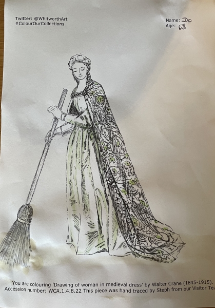An image of the drawing above was hand traced and then turned into a colouring sheet by Steph from the Whitworth’s Visitor Team.
