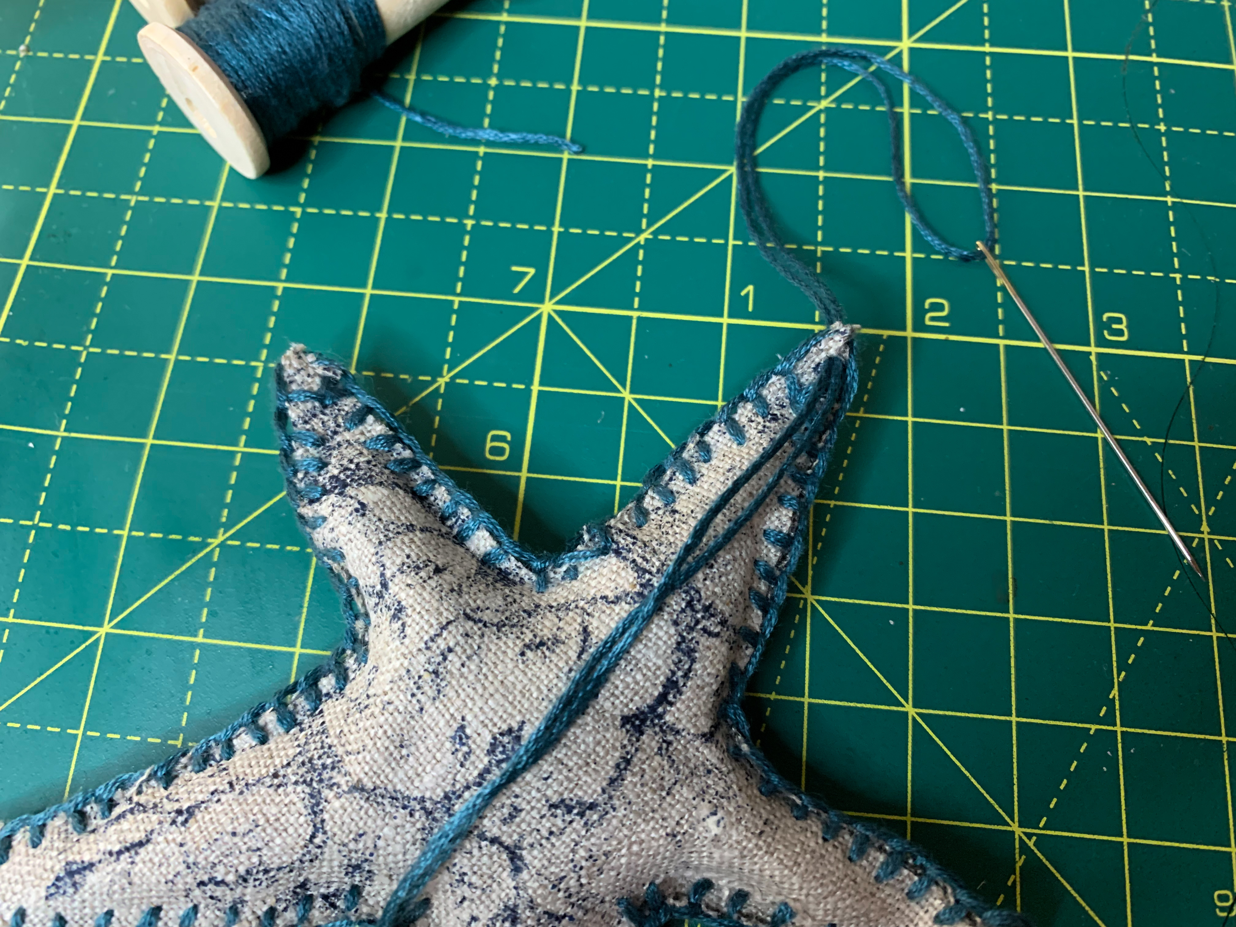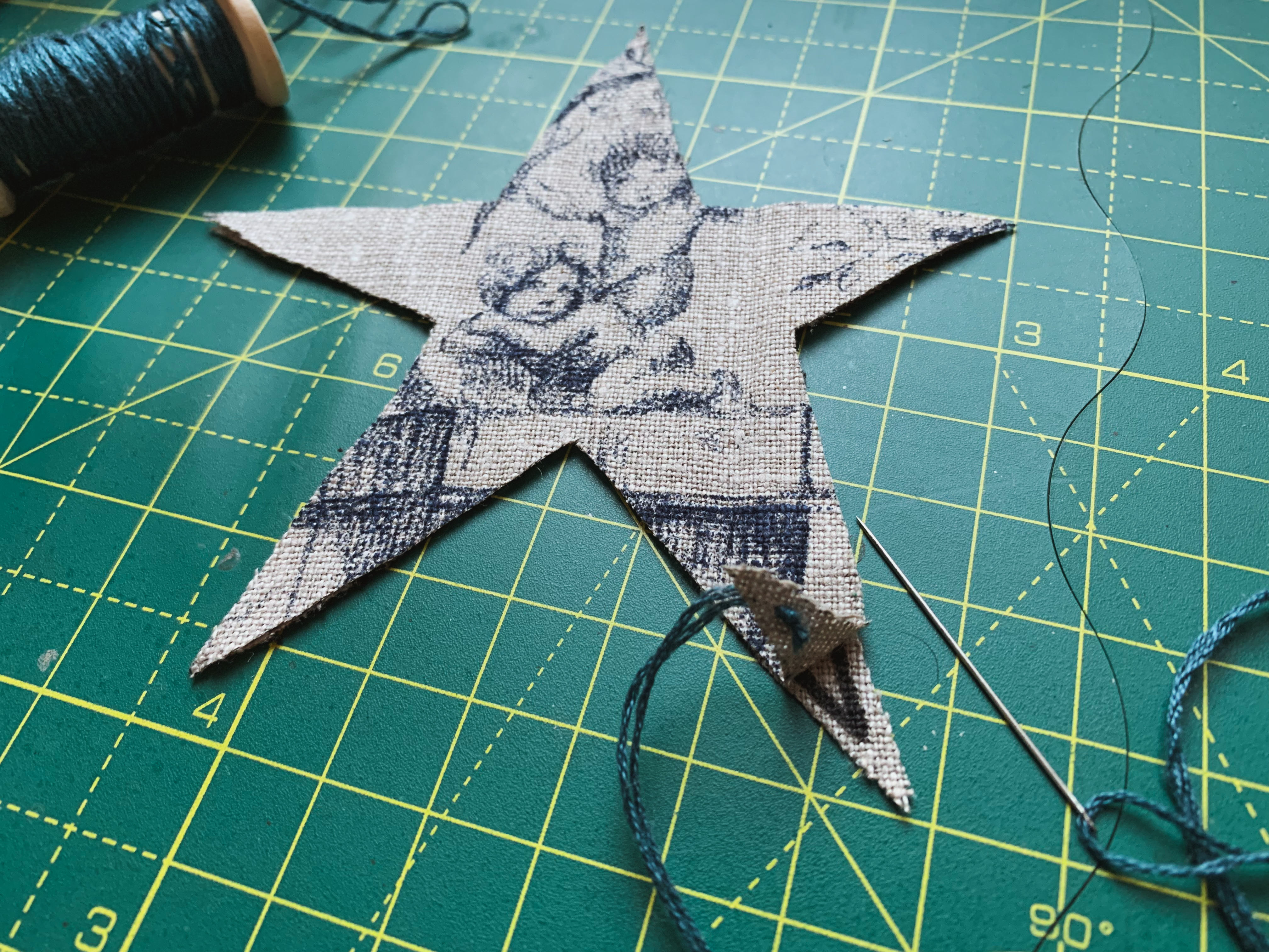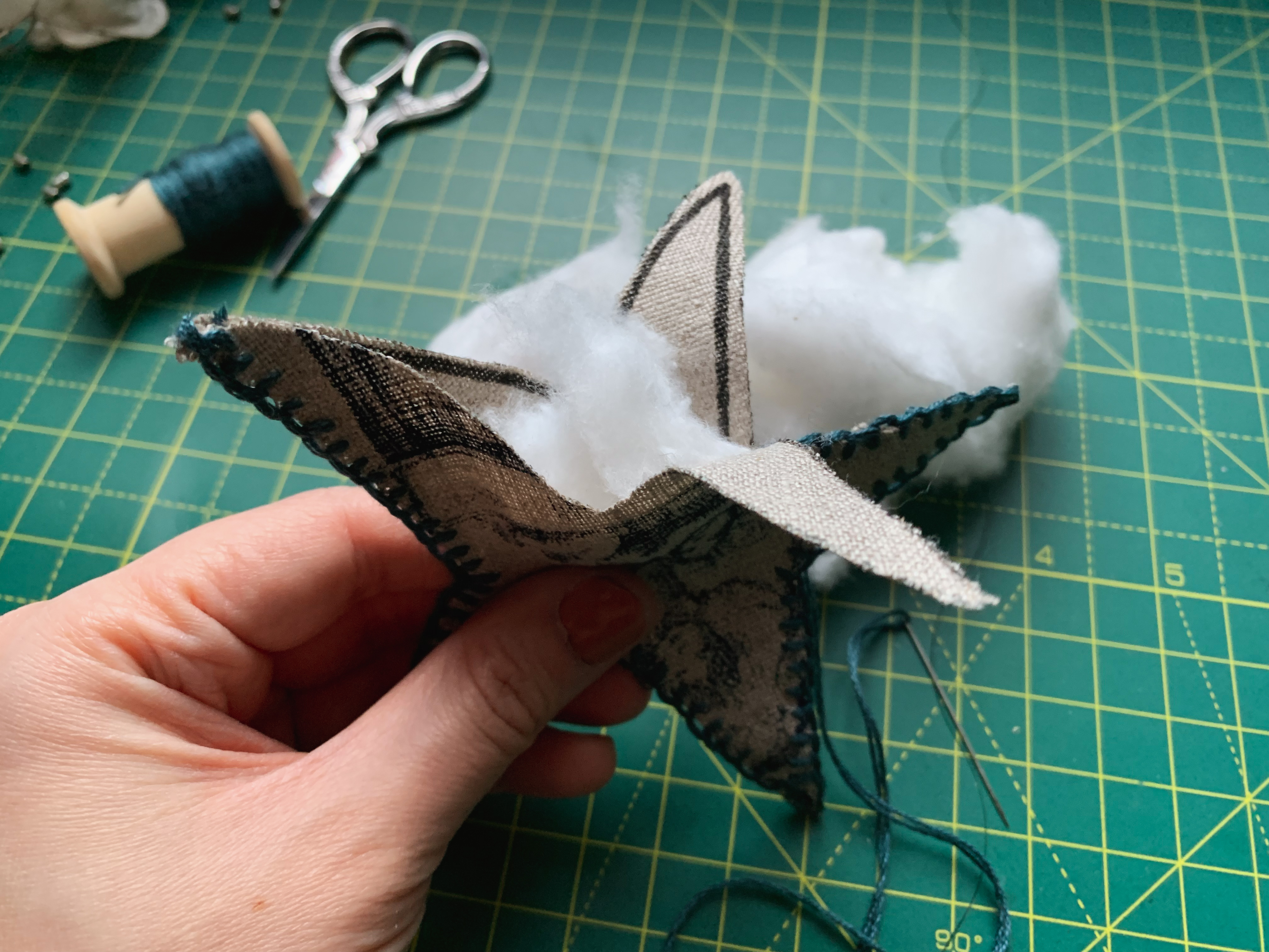 Step 5: Once the ornament is mostly sewn together, gently stuff with the cotton wool filling. Use a pencil or pointed object to help push the corners or points out if necessary and then sew closed.