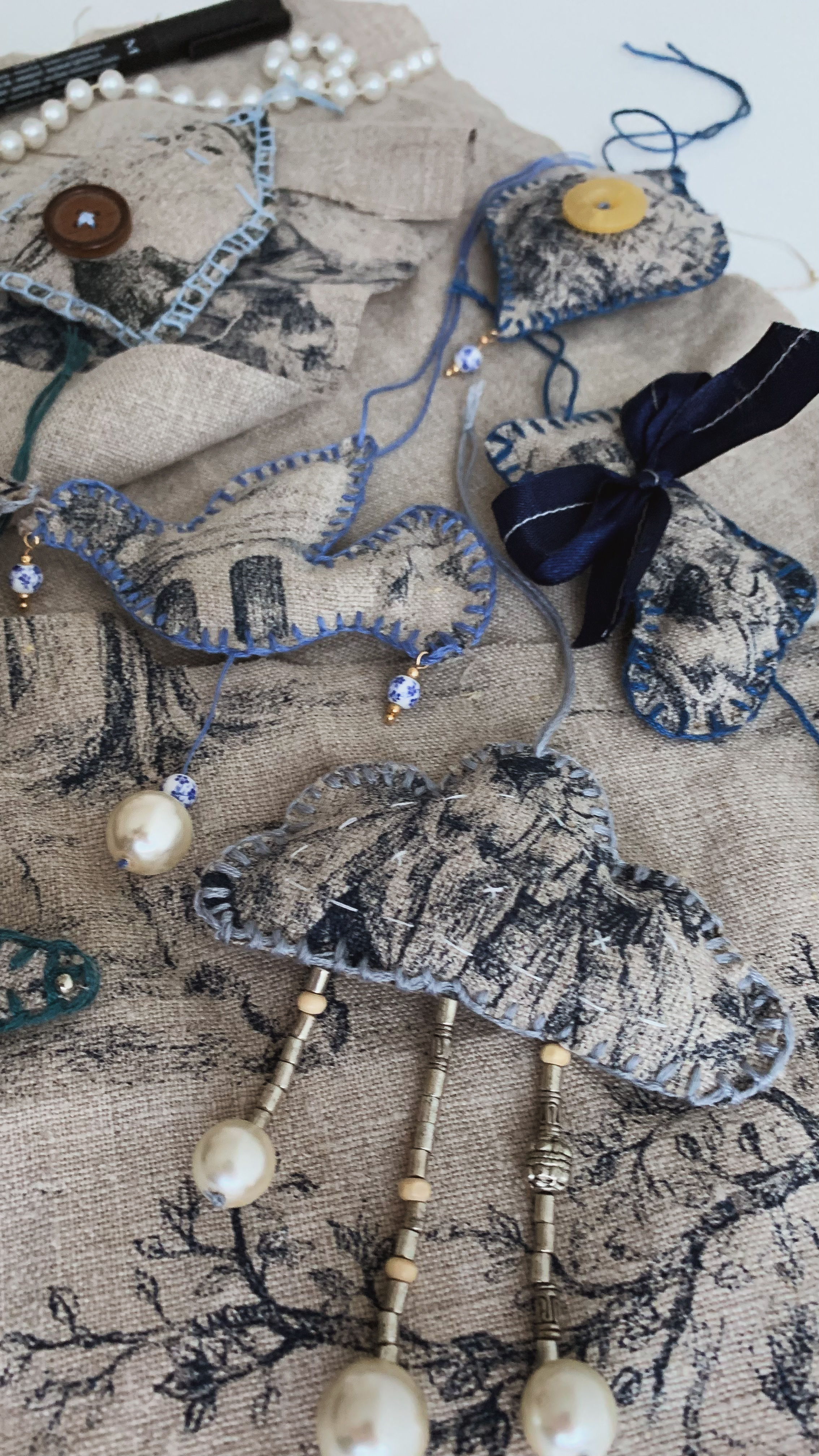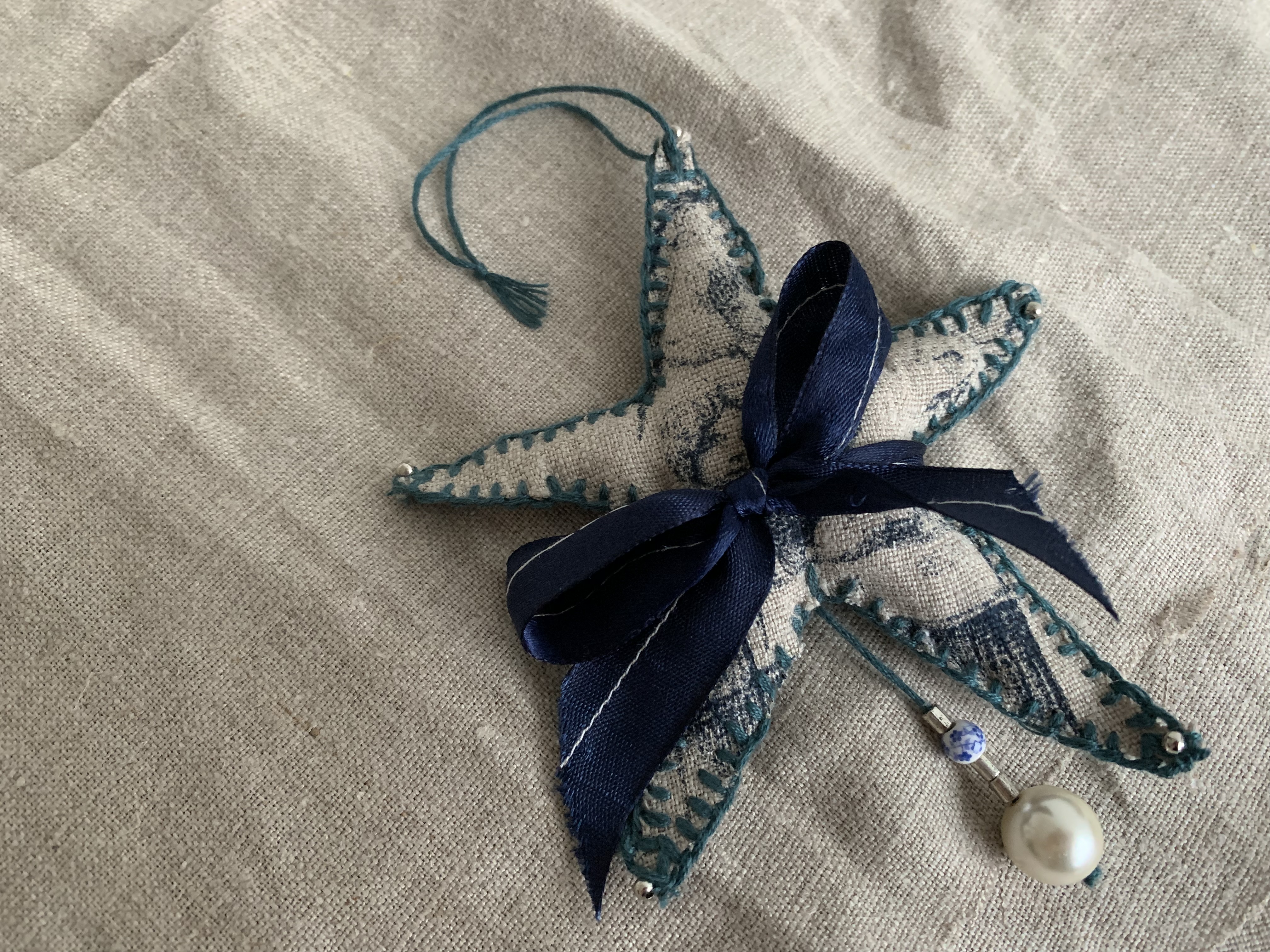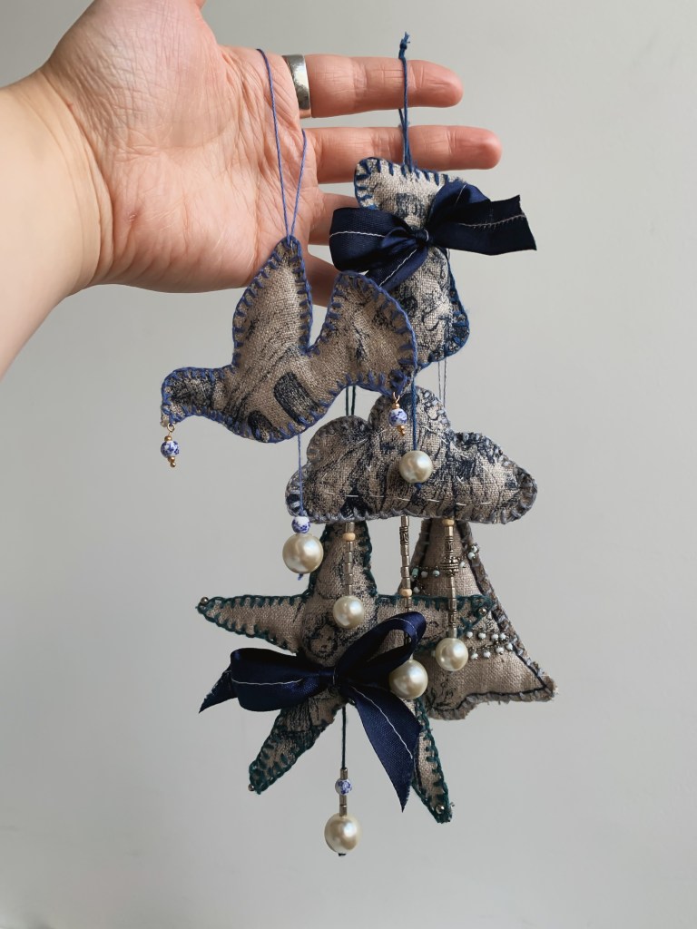 Step 7: Finally, add a ribbon and stitch the various beads and buttons onto your ornament.