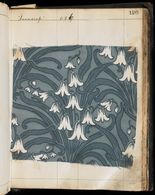 Thomas Wardle and Co, Sample Book, Copper Roller Records- Page 126, ‘Snowdrop’, c.1892-1906. Accession number: T.14009.126
