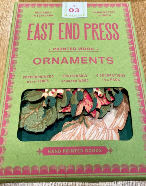 The paper and wooden decorations designed by East End Press in Glasgow and printed by hand in Jaipur certainly don’t disappoint. You can buy a pack of three beautiful wooden decorations featuring designs of traditional festive foliage, which look like they have been taken from a Victorian Christmas card, for just £12.50, or you can buy a plucky little robin redbreast and other individual wooden decorations for £5.00.