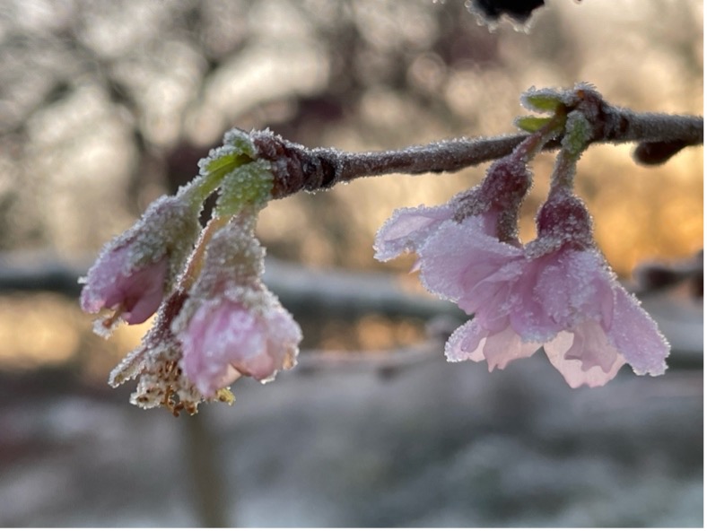 While holly, ivy, and mistletoe might be some of the more famous foliage talked about at this time of year, I’d like to bring your attention to the Leycesteria formosa, Himalayan honeysuckle, which has self-seeded in The Whitworth’s Art Garden. Although the garden was formally designed without any winter flowers, this honeysuckle has found a way of injecting itself into the garden. It’s a pleasant sight with its red berries that will stay throughout the winter, the flowers emerge in autumn and are followed by berries which turn a purplish-black colour. The fruit is edible and tastes of chocolate, although don’t take my word for it, the birds get them first. The Community Garden is home to a Prunus Autamalis, to you and me, that’s a winter flowering cherry. Cherry blossom is a rare but welcome sight in winter. I love that blossom can be seen at this time of year. On a cold, crisp day I’d recommend a stroll through our gardens.