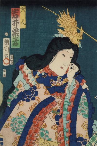 You can listen to an audio description for Toyohara Kunichika’s The Actor Shijaku Iwai as Heavenly Being , written and recorded by Rae, below: