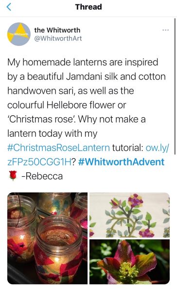 You can find plenty of content from the first ever #WhitworthAdvent calendar in 2020 across our facebook, twitter and Instagram pages @WhitworthArt